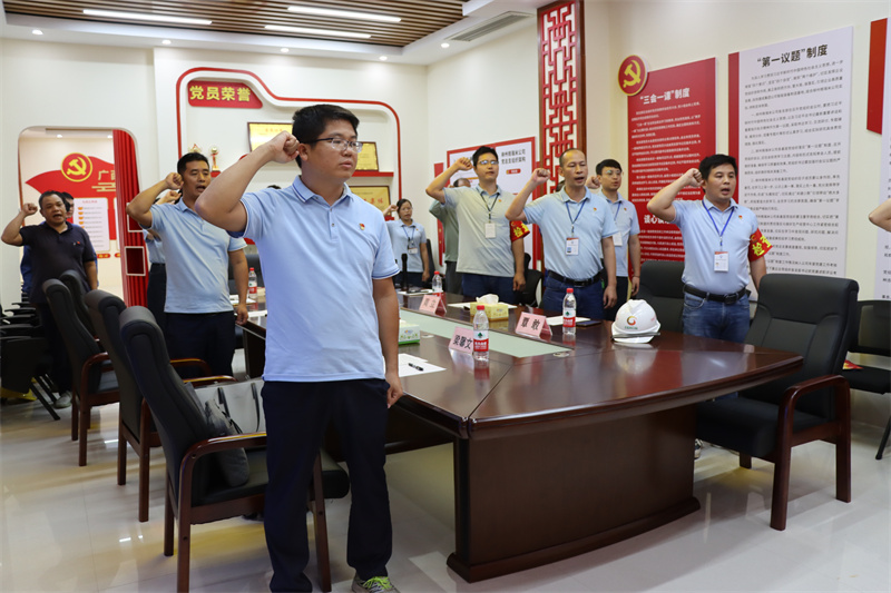 “我志愿加入中国共产党,拥护党的纲领,遵守党的章程……”活动在重温入党誓词中拉开序幕,全体党员同志有序列队肃立,右手握拳,面对党旗庄严宣誓,以铿锵有力的宣誓声表达着永远忠于党、永远跟党走和为共产主义事业奋斗终身的决心。随后,大家共同为第三季度入党的同志过党员政治生日,进一步增强党员的荣誉感和责任感。