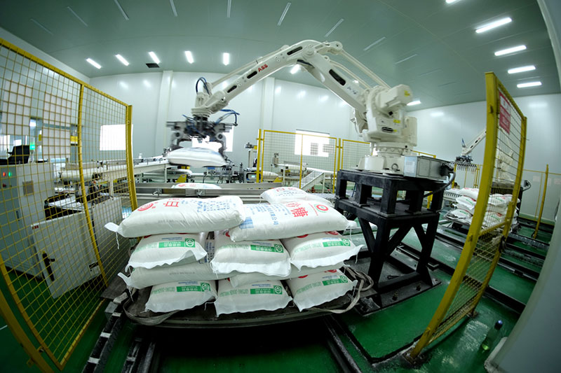我院自主研发的全自动包装码垛机器人生产线可用于制糖、食品、饲料、化肥、淀粉、化工、医药、纳米碳酸钙等行业粉料、颗粒物料的传统套装式可分离内外袋自动化包装,实现将内袋封口后置入外袋,然后自动缝合外袋,包装全密封,无针眼,属世界首创。